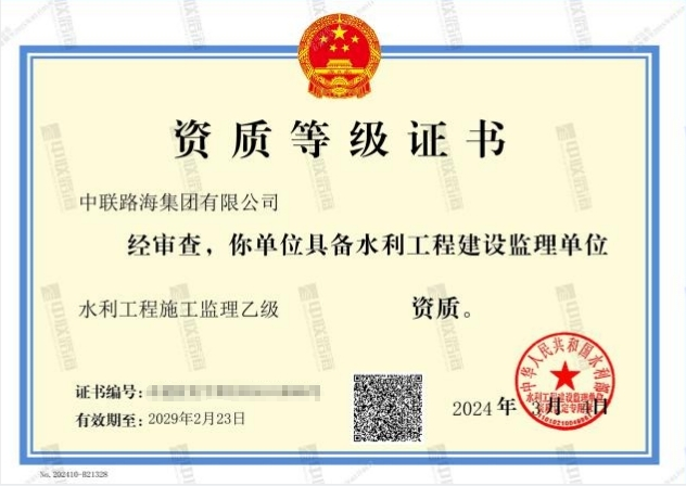 近日,,,,中华人民共和国水利部发布《关于水利工程建设监理单位资质准予行政许可决定的公告》(水许可决[2024]17号),,,,尊龙时凯集团有限公司通过层层审查,,,,成功通过评审,,获得“水利工程施工监理乙级”资质。。